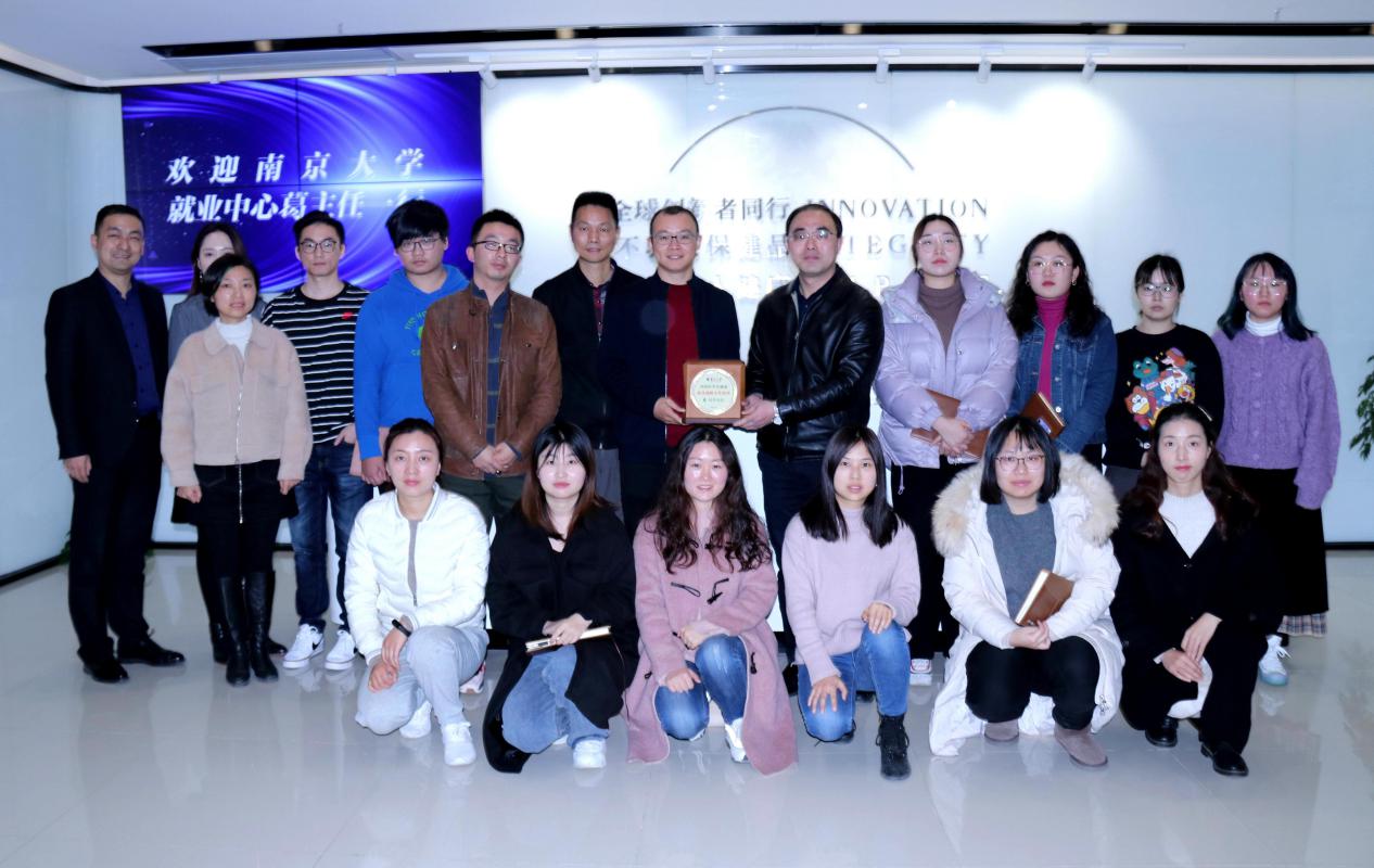 近日,南京大学2020年学生就业最佳战略合作伙伴授牌仪式暨校友座谈会举行。学生就业指导中心负责同志分赴南京绿野仙踪生物科技有限公司、中国石化江苏石油分公司、中信银行南京分行进行授牌,并与校友代表展开座谈。