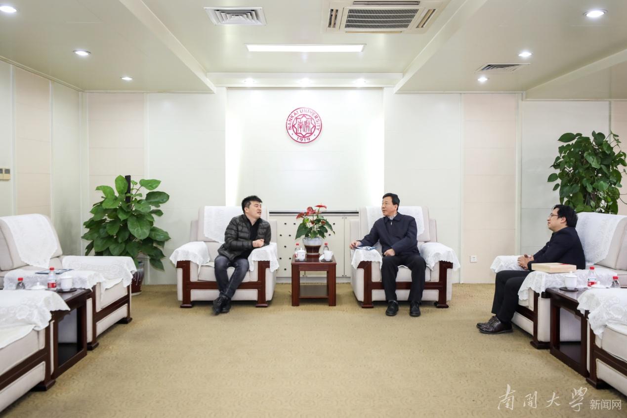 1月14日, 南开大学校董、1999级金融学专业校友王静君回访母校,南开大学党委书记、南开校友总会理事长杨庆山在八里台校区服务楼会见了王静君
